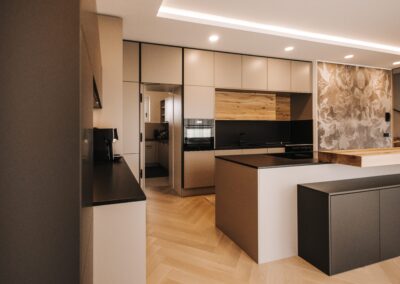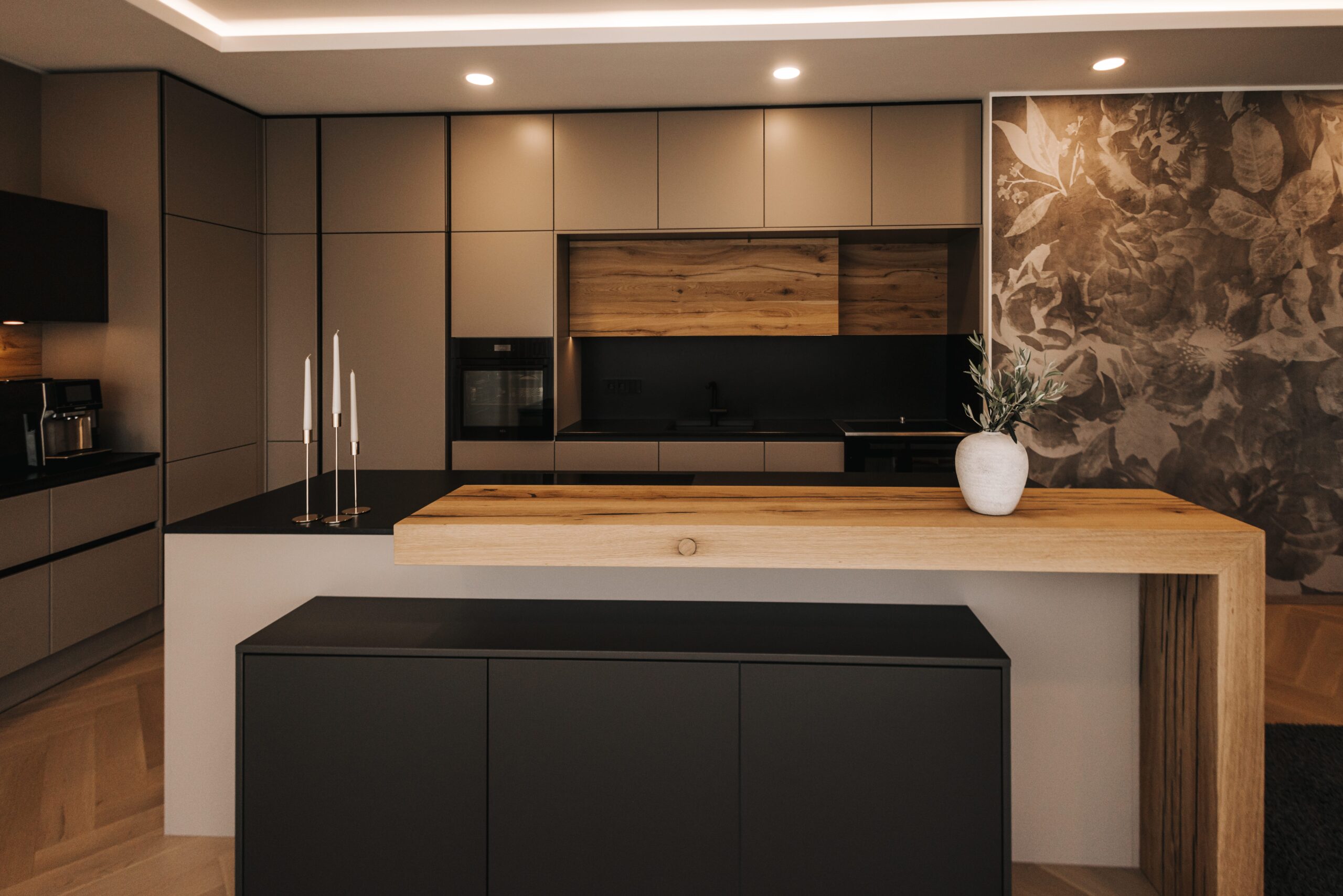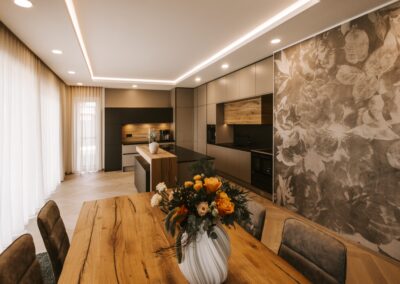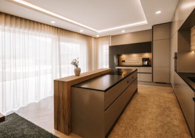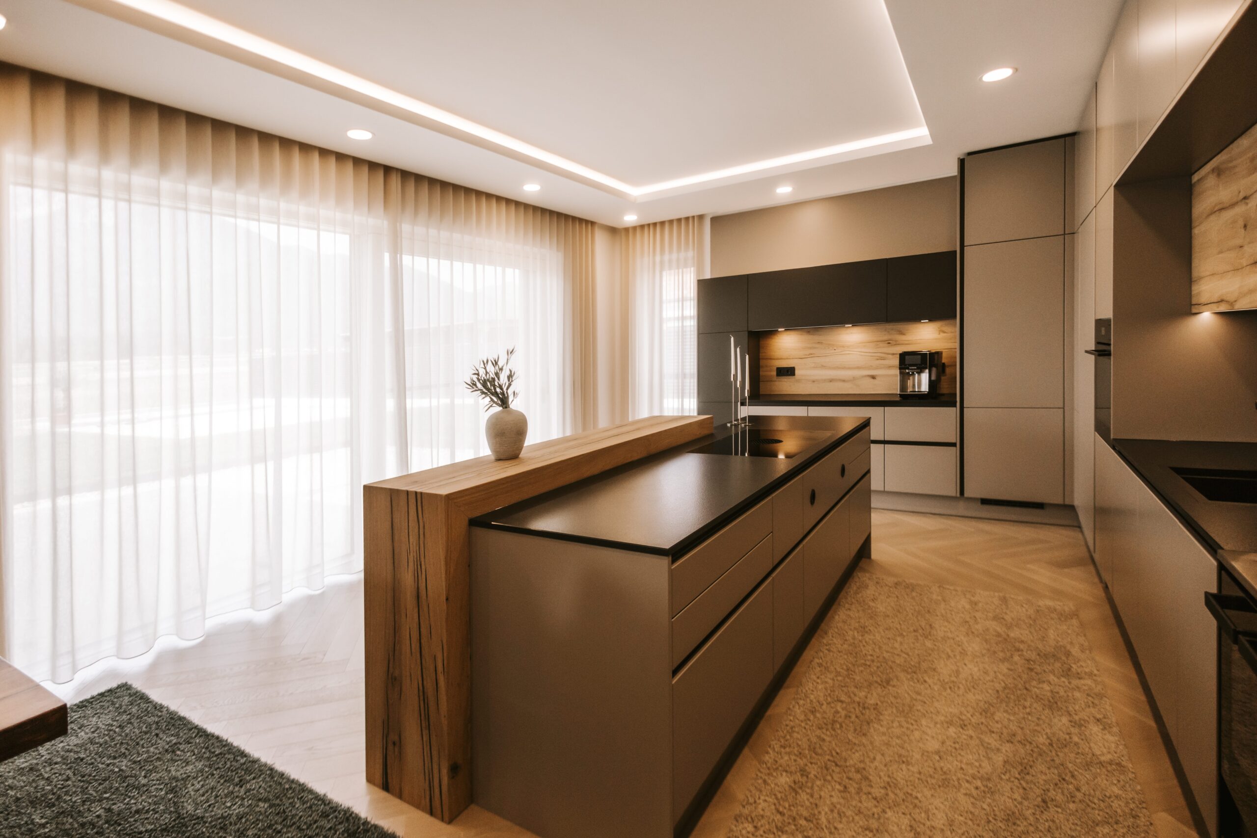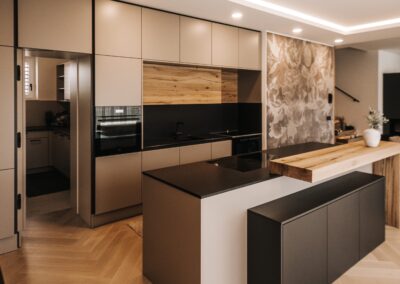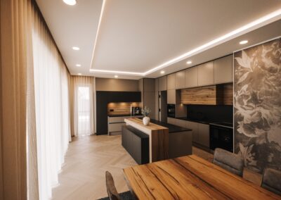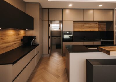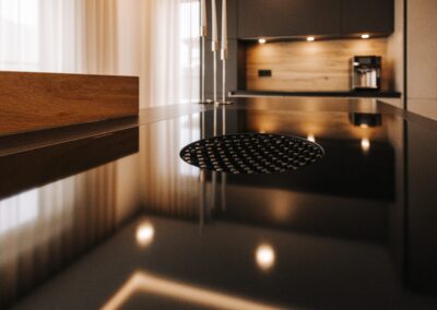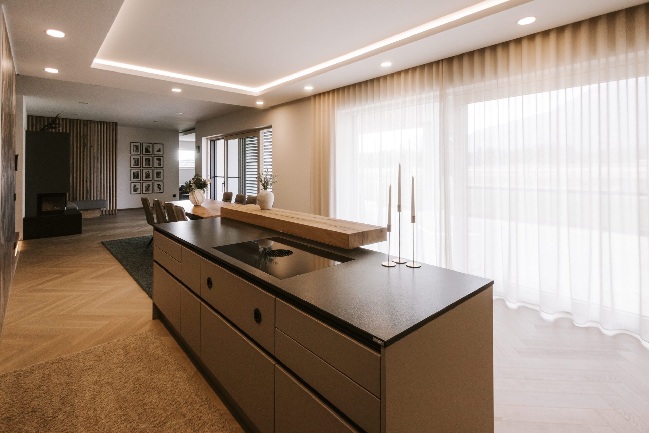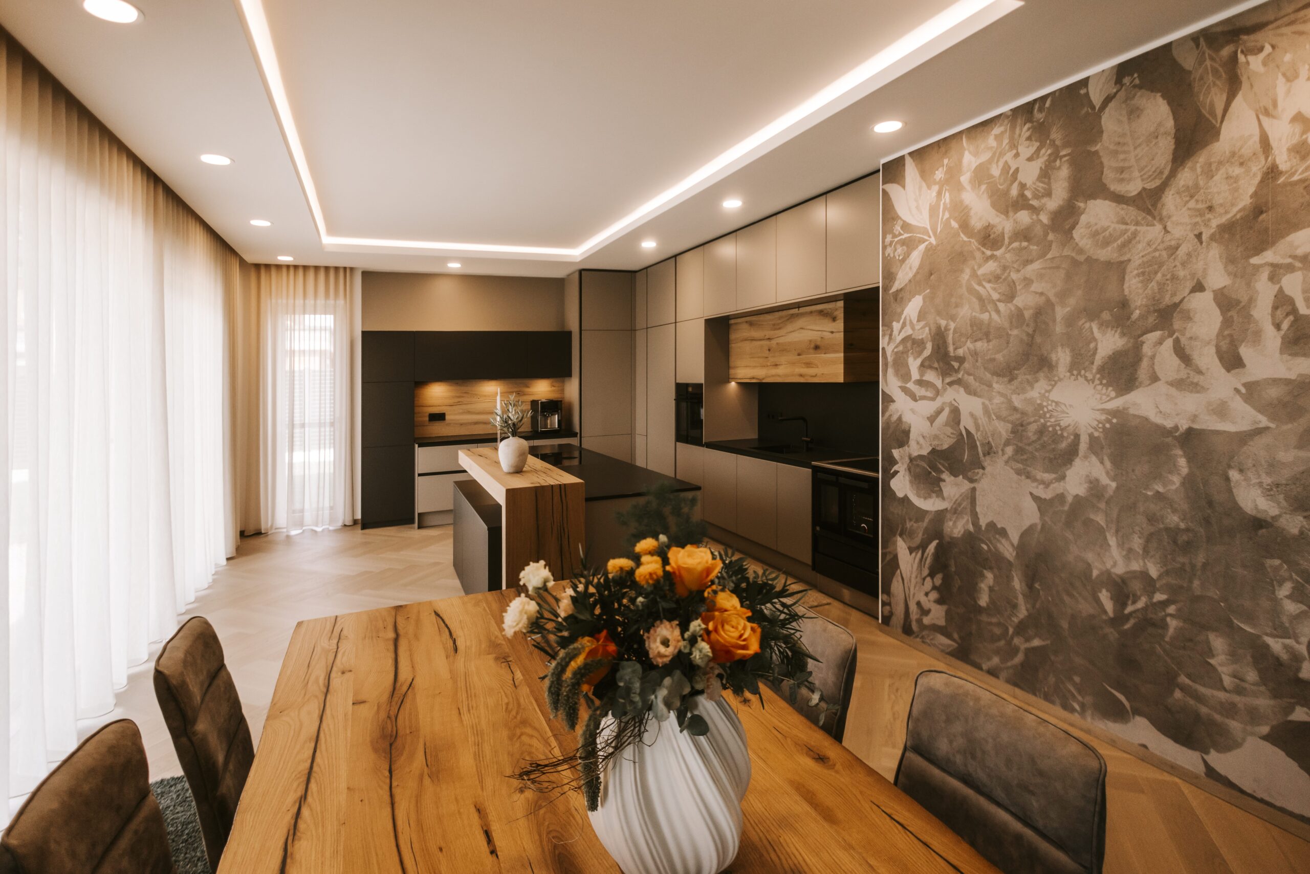 Die natürliche Ausstrahlung des Holzes verleiht der klaren, modernen Gestaltung Tiefe und Charakter – elegant, ruhig und dauerhaft schön.
