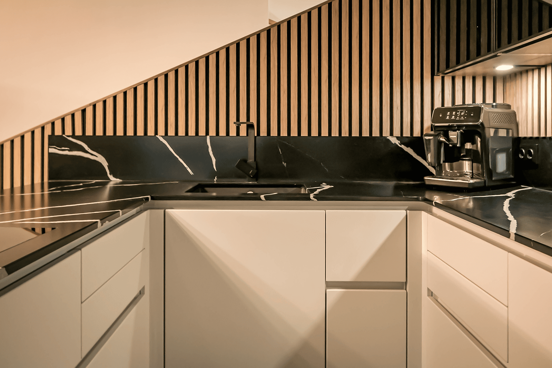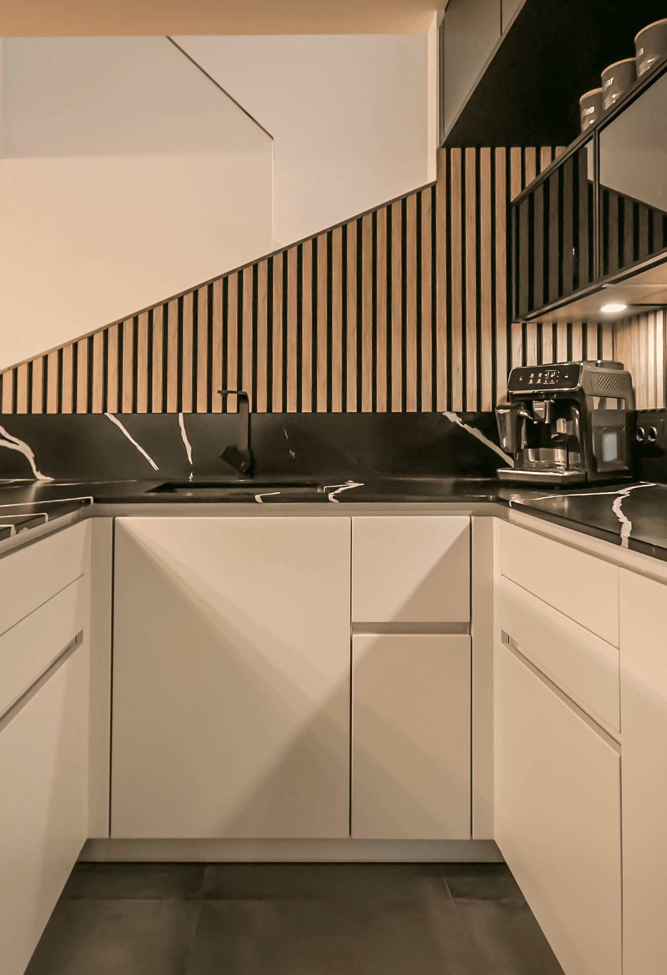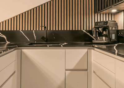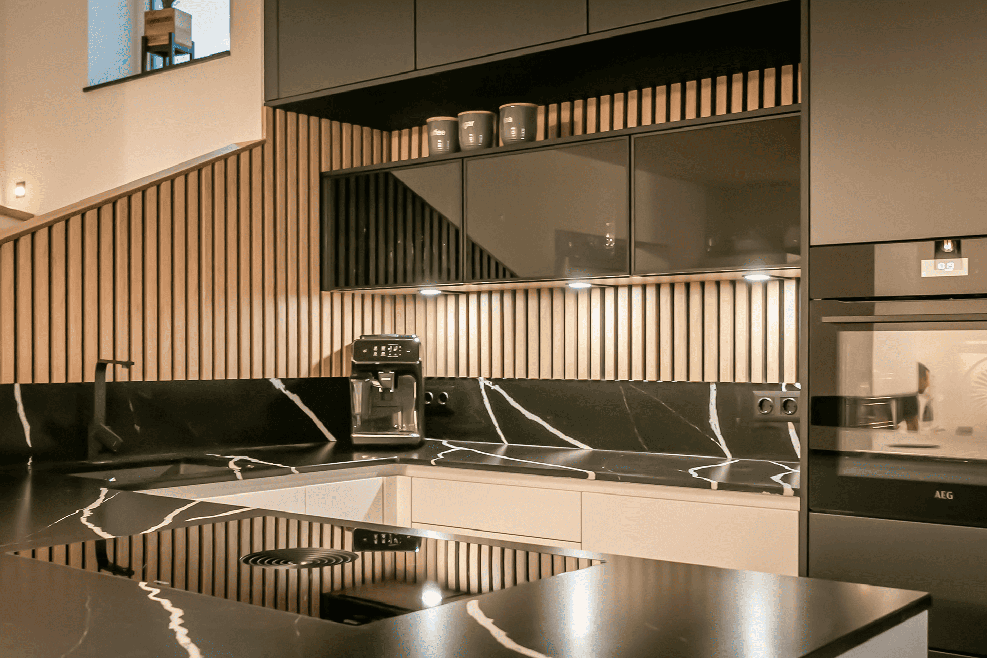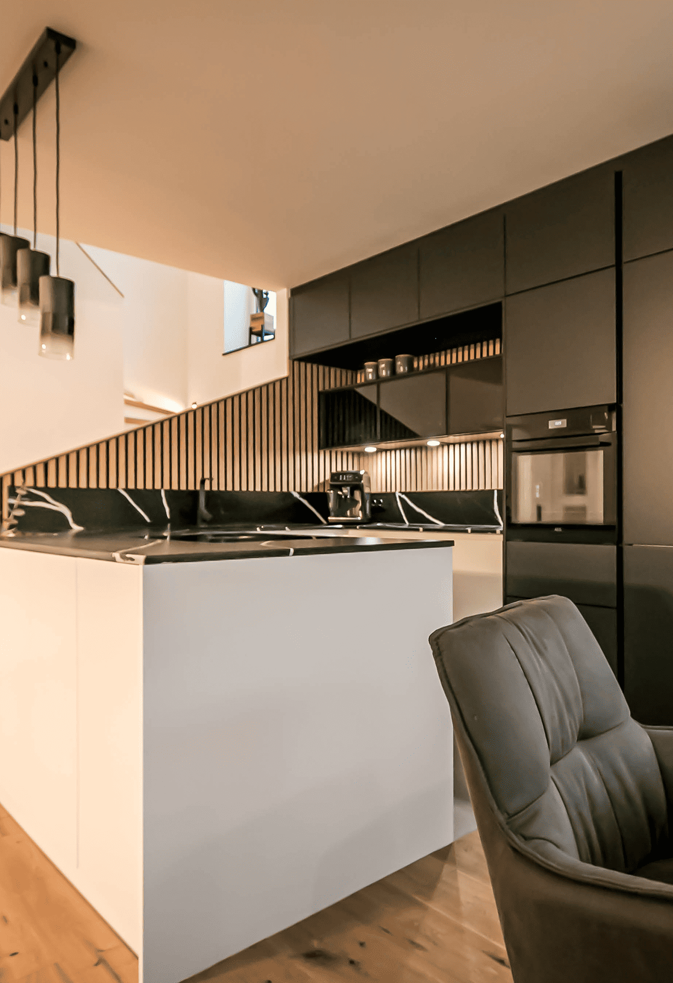 - Der Stiegenaufgang wurde mit dem Küchenkoncept vereint