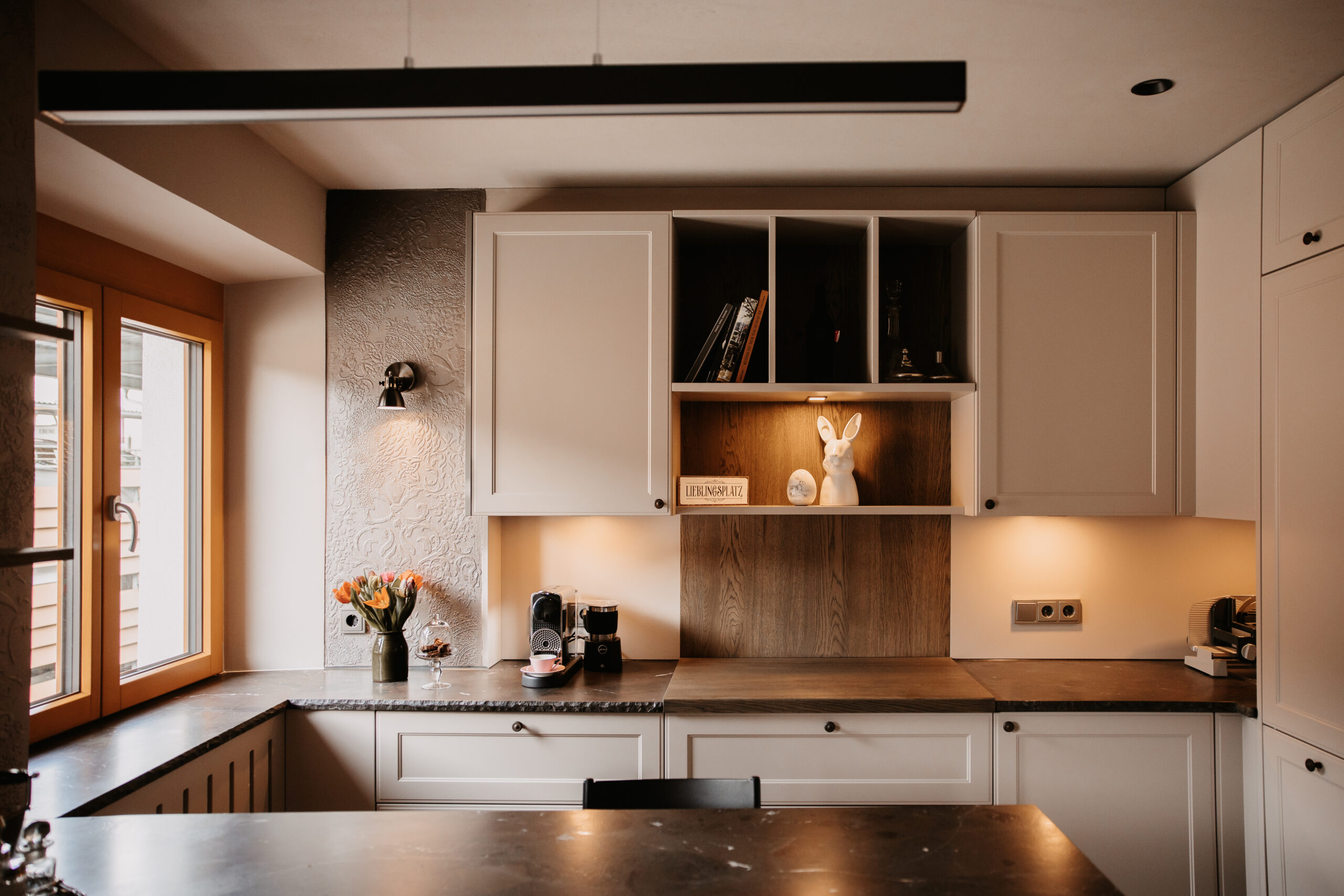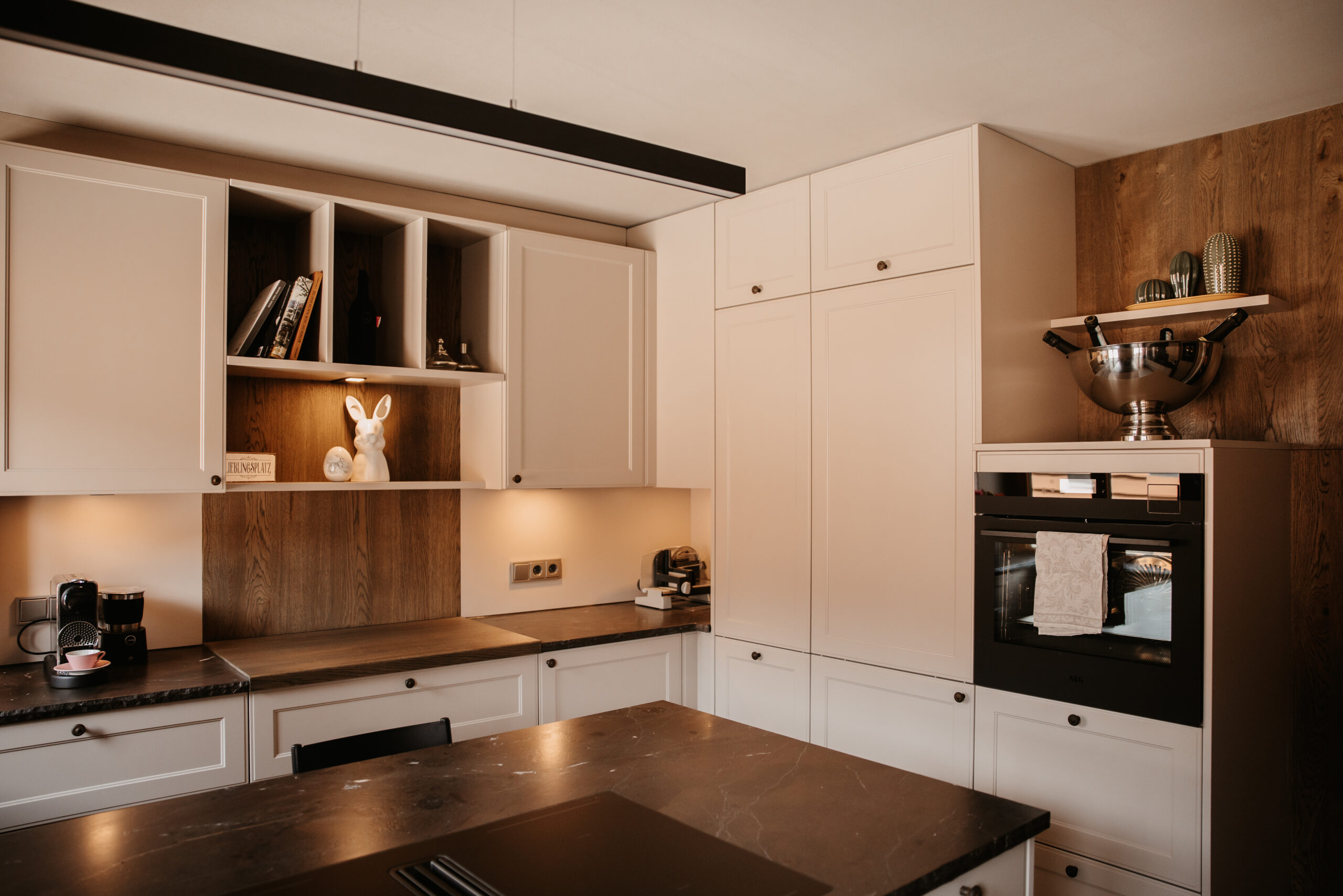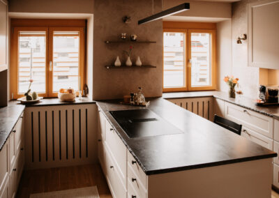 Klassische Formen treffen auf warme Materialien und präzise Details. Eine Landhausküche, die Tradition neu denkt – ruhig, stilvoll und beständig.